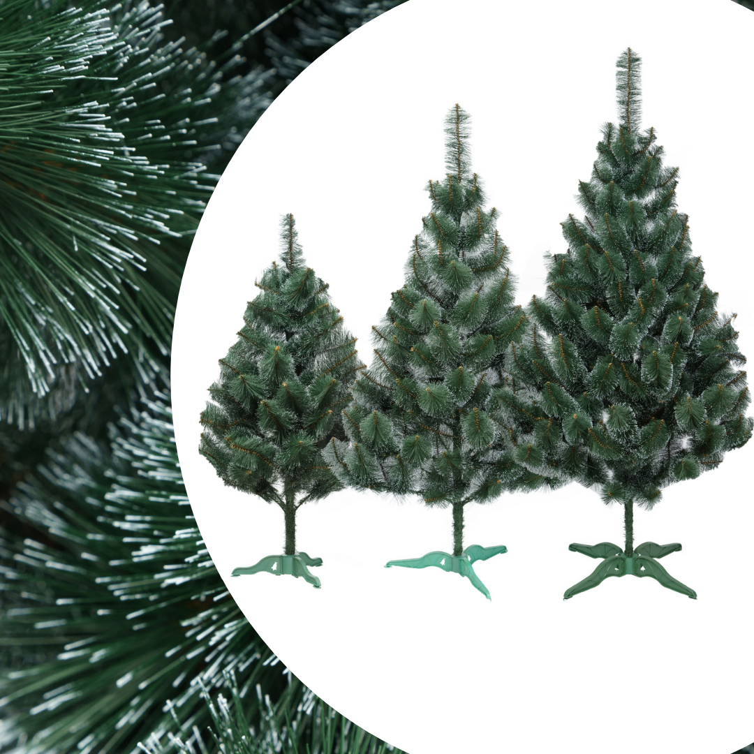 Новорічна штучна сосна виконана на металевій основі, гілочок даної моделі можна надати різну форму. Текстура голочок, дуже приємна на дотик, дуже схожа на справжню сосну і має темно-зелений колір з ефектом покриття інеєм.