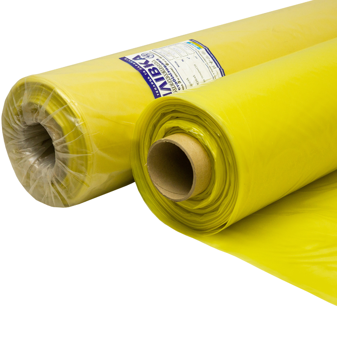 Плівка 150 мікронів щільність, 3 метри ширина в розвороті, 100 метрів довжина рулону. Вона має особливий жовтий відтінок, що дає змогу відрізнити її від звичайної поліетиленової плівки.